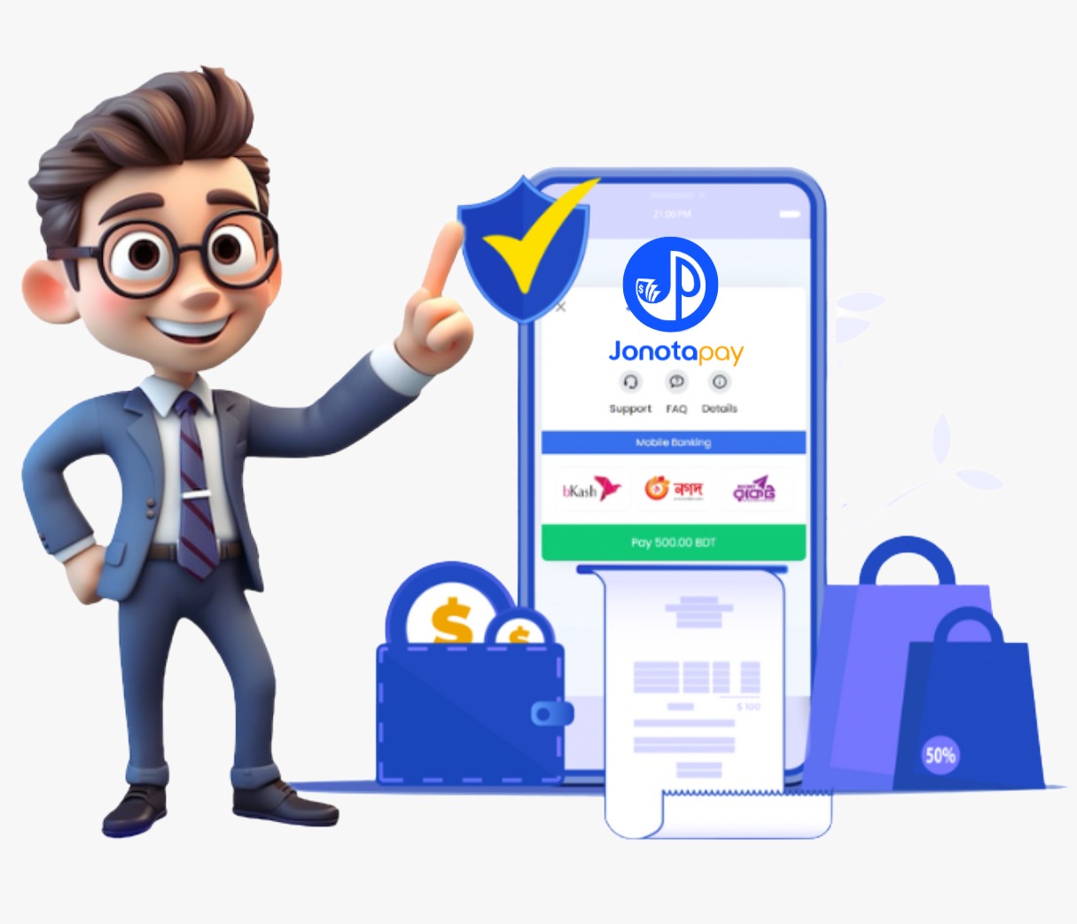 Offer your customers various payment methods, including Mobile Banking and Bank Transfers, through BD AUTO PAY versatile platform.
